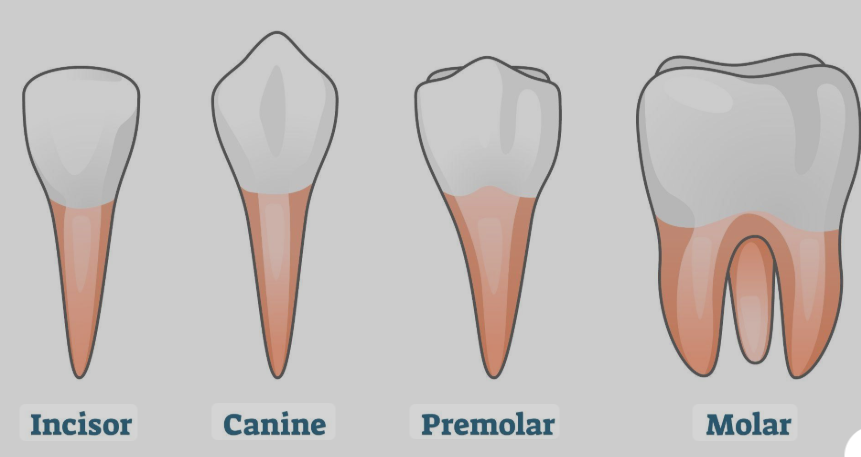 Teeth are classified by their shape and function. Some are sharp and pointed for cutting, while others are flat and broad for grinding. Each type plays a specific role in processing food.