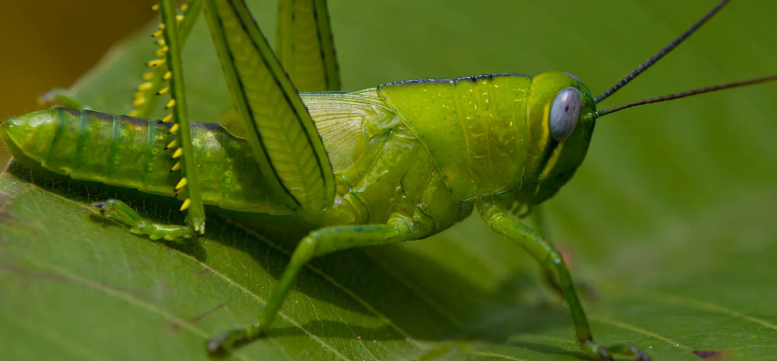 This grasshopper is a master of disguise, but not in the way you might expect. While its body is a simple green, its hind wings feature a large, dark eyespot that resembles the eye of a much larger animal. When it flashes these wings, it can startle a predator long enough to make its escape. It is commonly found in lush, grassy fields and meadows.